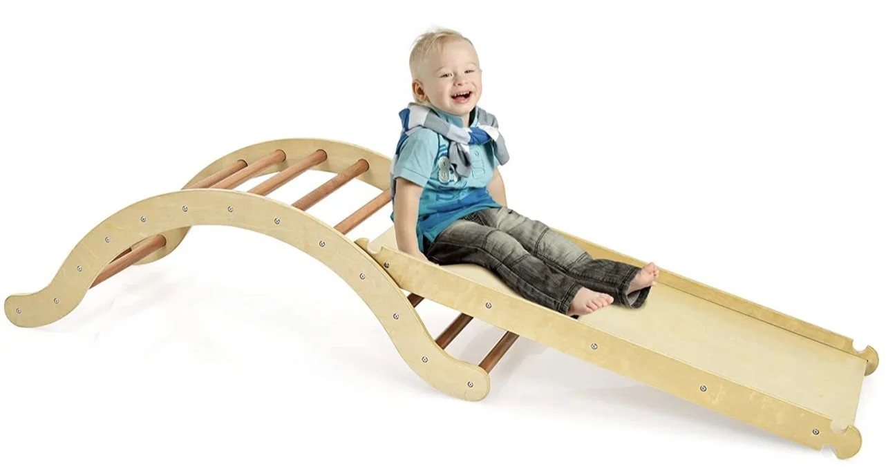 You can’t go wrong with a set of wooden climbing pieces. Kids of all ages will use these in a thousand different ways, from using it when learning to climb, to a castle wall propped up on its side. This is what open-ended means. A child is not boxed in with how something is made to be played with. There are no buttons directing the play, it all comes out of their imagination.